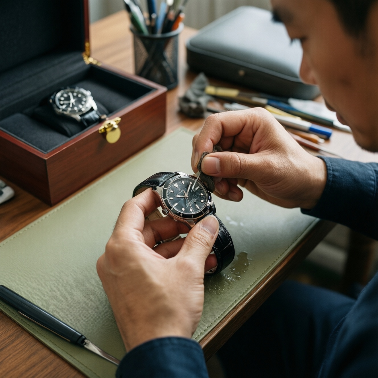 Очищайте регулярно и мягко: цель - убрать пот, пыль и следы, не "срезая" покрытия и не загоняя грязь в стыки. Если вам нужна полировка часов, не пытайтесь заменить её абразивными пастами "для всего" - вы легко испортите грани и сатинирование.